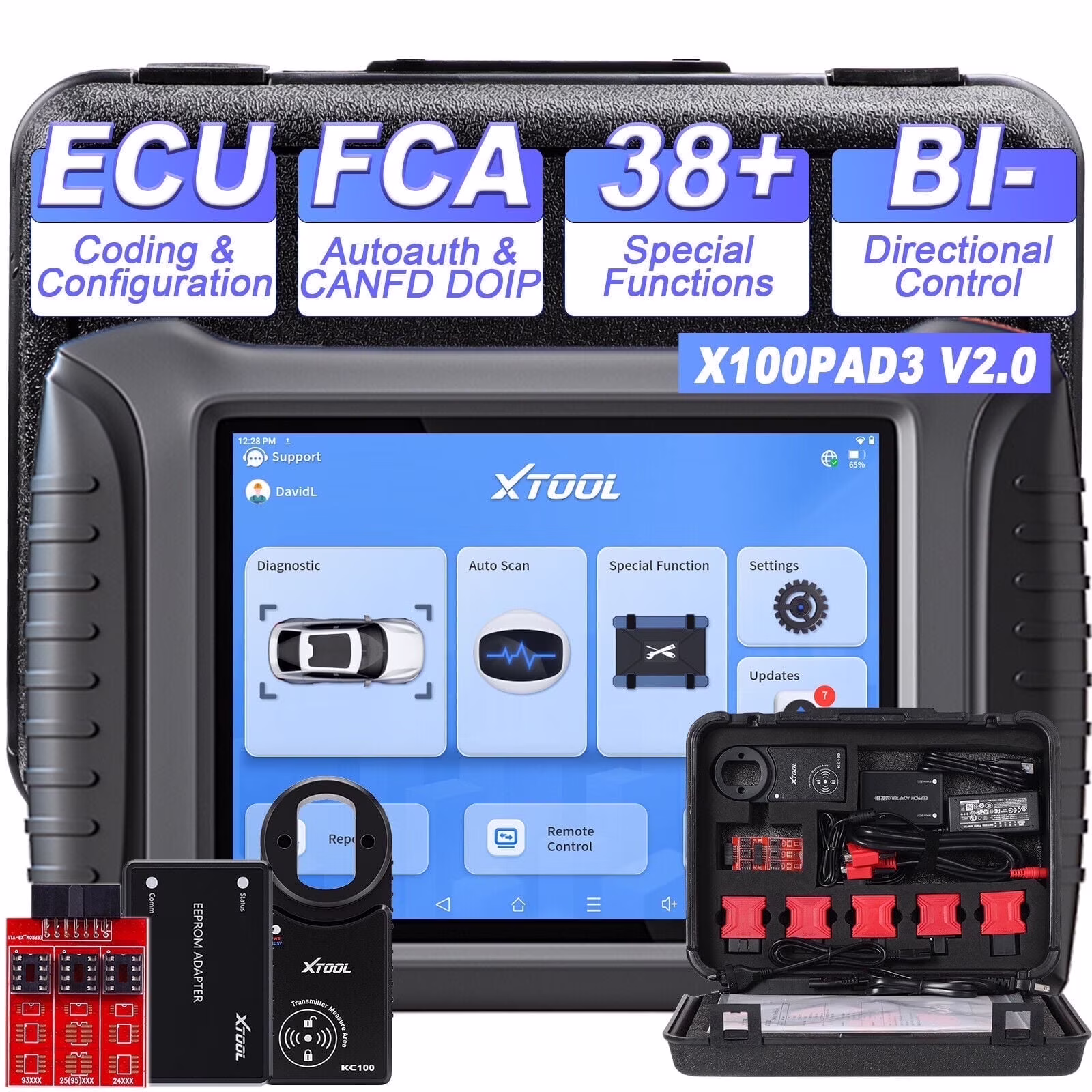 XTOOL X100 Pad 3 Automotive OBD2 Scanner with Bidirectional Control Full System Diagnostic Scan Tool Key Fob Programmer, 38 Services