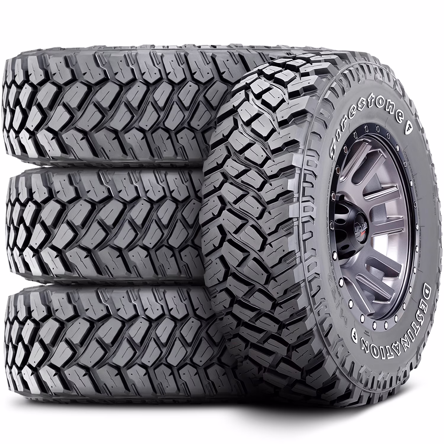 Set of 4 (FOUR) Firestone Destination M/T2 LT 255/75R17 Load C 6 Ply MT Mud Tires Fits: 2021-22 Jeep Wrangler Willys Sport, 2013 Jeep Wrangler Unlimited Rubicon