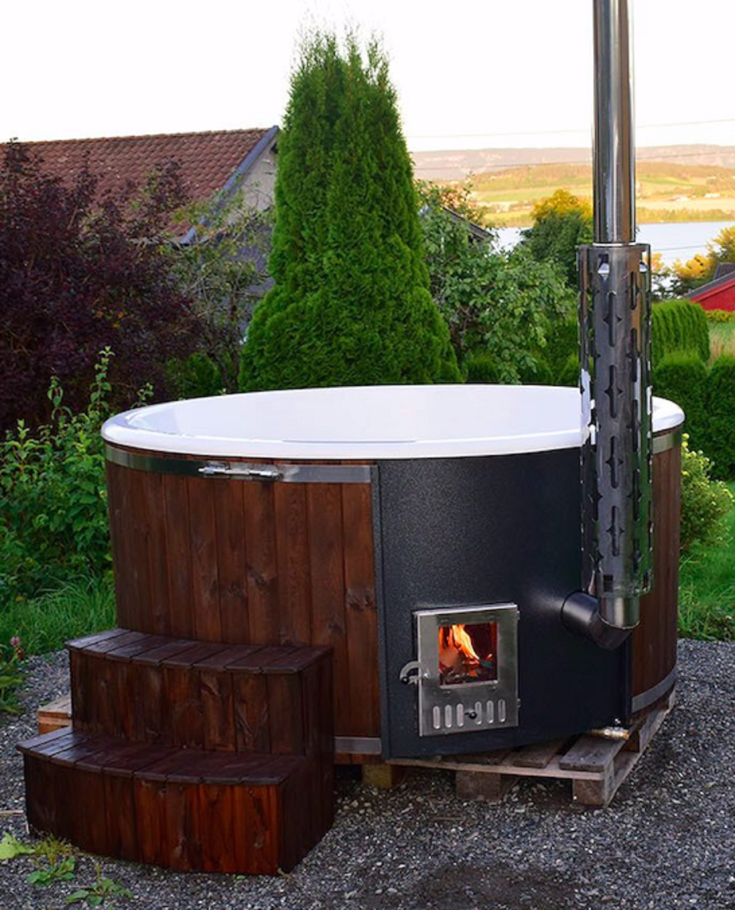 Hud-1 EZ Buildings Sierra 6 Person Round 78 in. Wood Fired Hot Tub