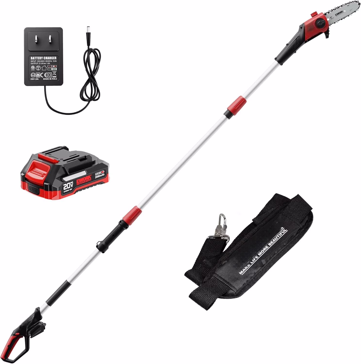 20V 8-Inch Cordless Pole Saws for Tree Trimming, Extension Up to 14.2-Ft, Lightweight Only 6.5 Lbs, Auto Oiling Electric Pole Saw Battery Powered with Battery and Charger - EK-TT2008HH