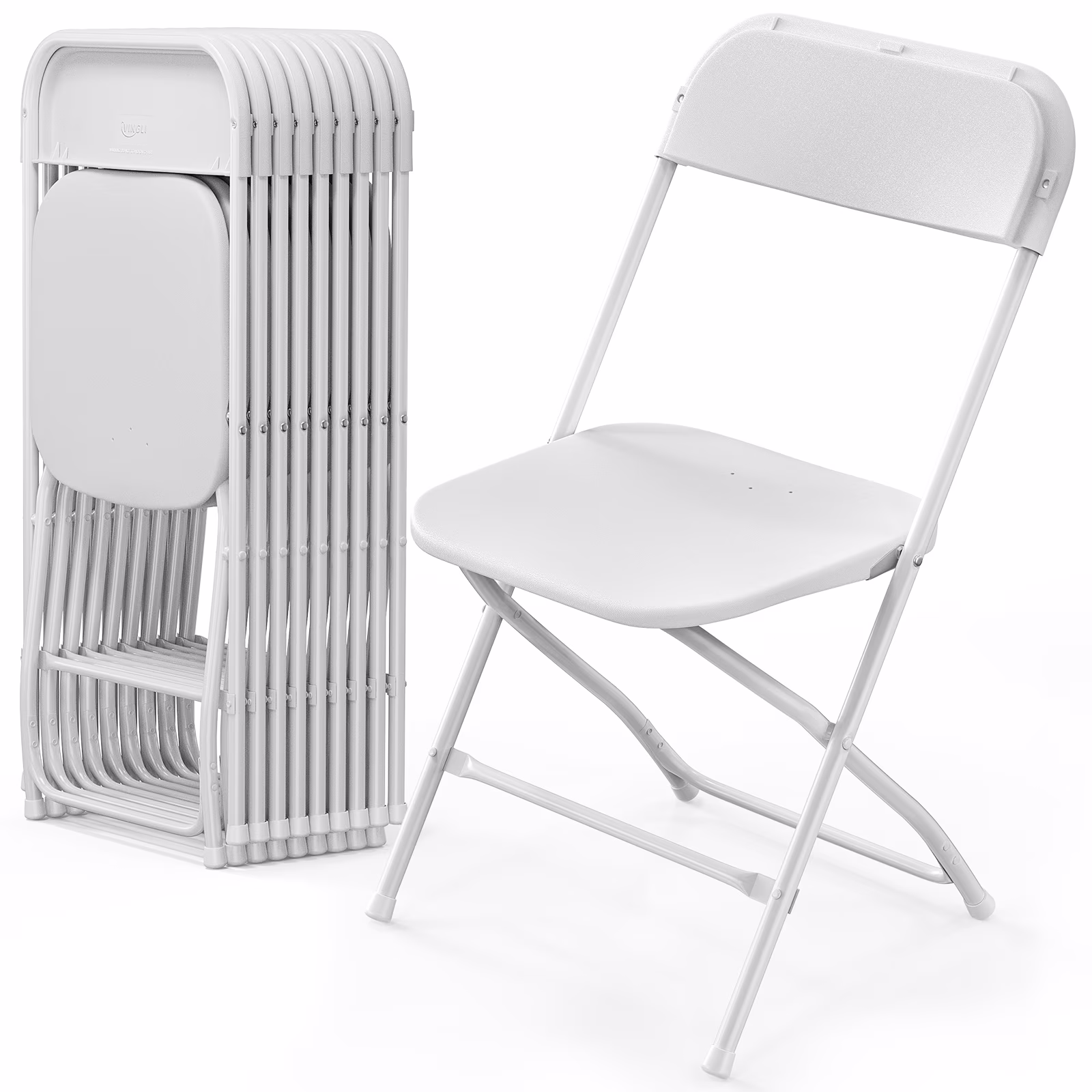 JOYMOR 10 Pack White Plastic Folding Chair, Indoor Outdoor Stackable Seat