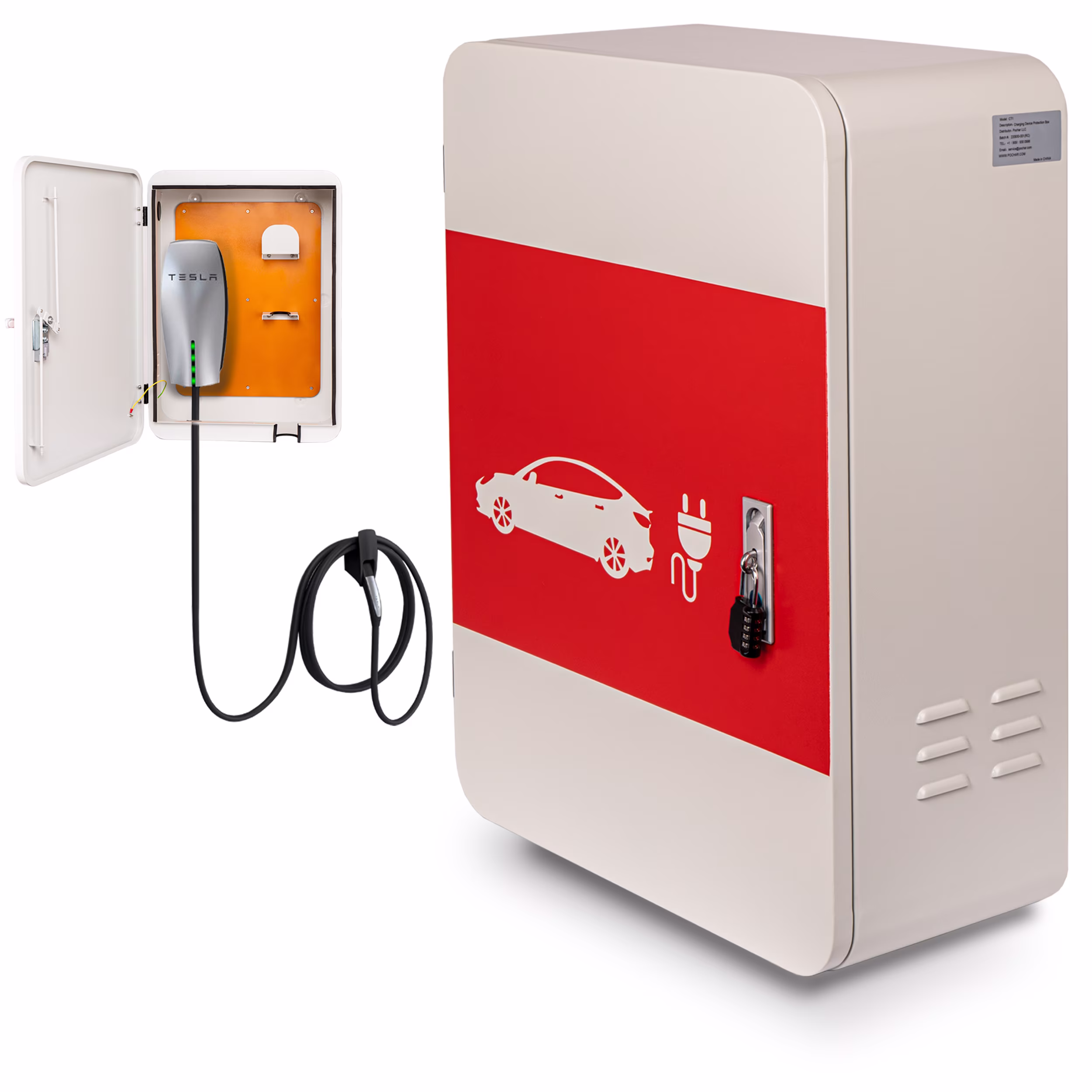 Pochar Tesla Charger Station Box, 28'' x 20'' x 10'' Indoor Outdoor Cable Box Charging Box Cable Organizer, IP66 Waterproof Dustproof Cool Roll Steel Electrical Enclosure Box, for Tesla Wall Connector