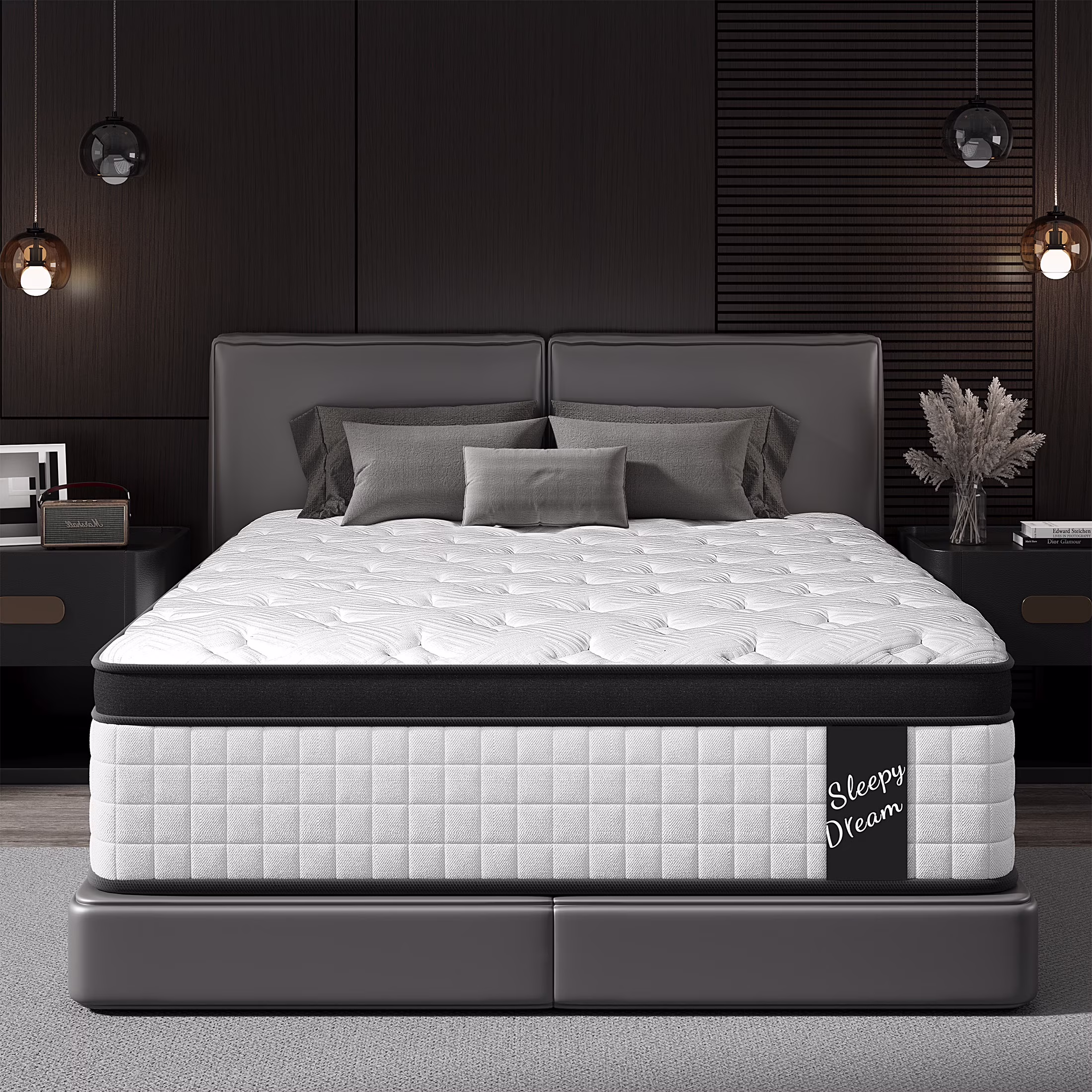 Queen Mattress 12 inch, UHOMEPRO Queen Size Mattress in a Box, Gel Memory Foam and Wrapped Pocket Hybrid Spring Mattress, Medium Firm, Zoned Pressure Relief, Enhanced Edge Support, CertiPUR-US