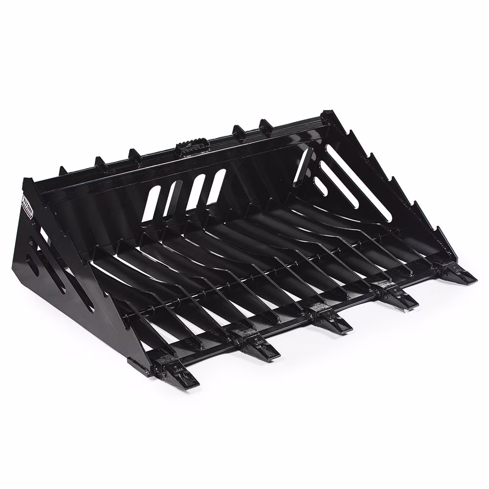Titan Attachments 60in Skeleton Rock Bucket with Bolt-On Teeth, Skid Steer Quick Tach, Reinforced Side Cutters