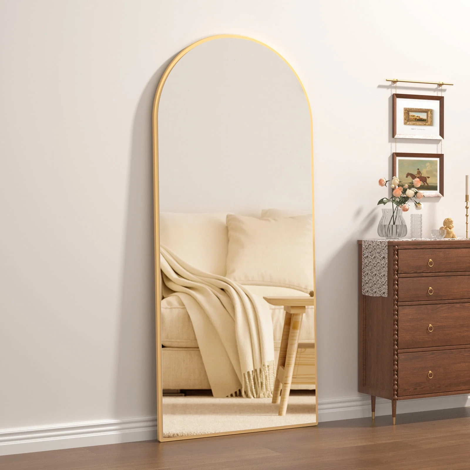 BEAUTYPEAK Arched Full Length Floor Mirror 64"x21.1" Full Body Standing Mirror,Gold