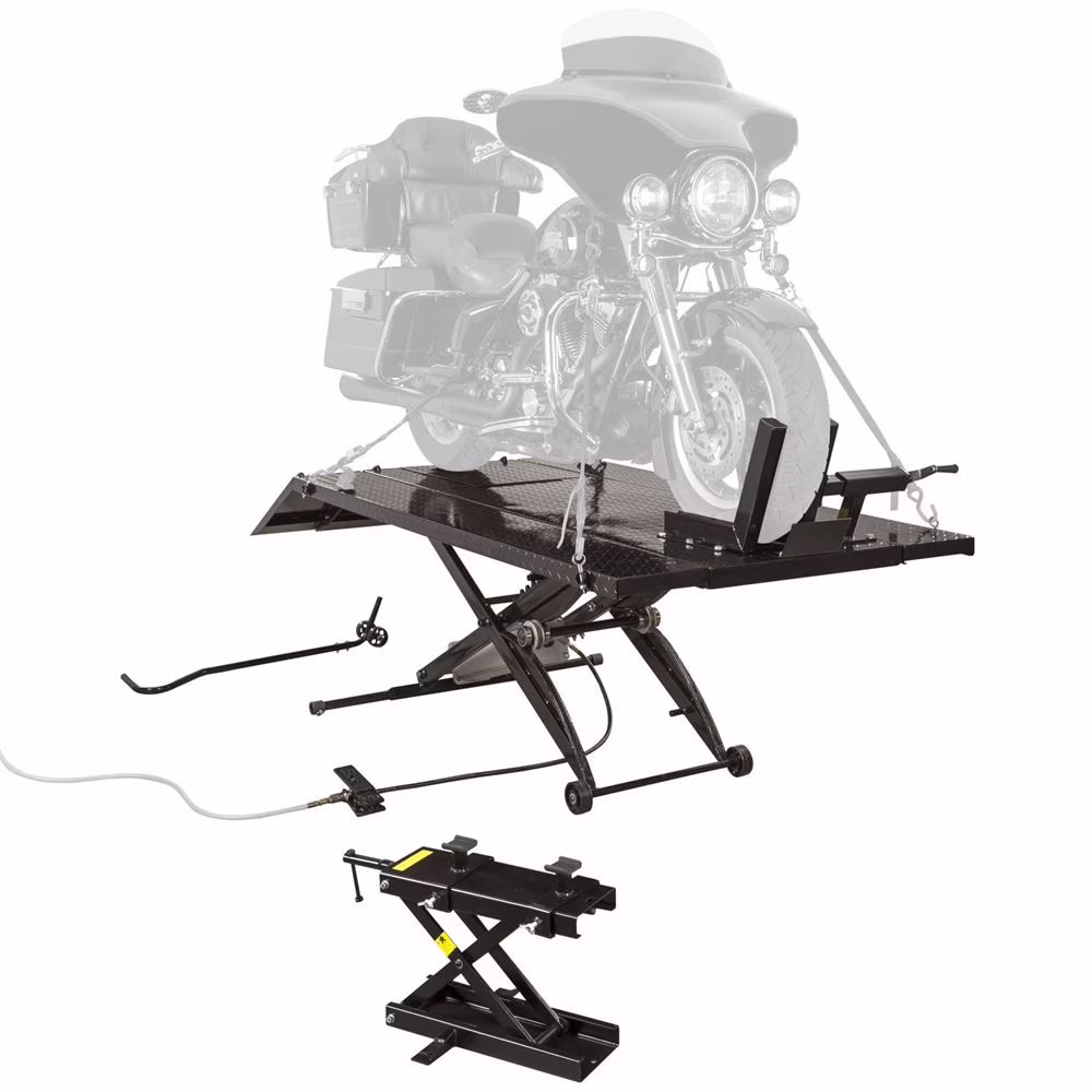 Black Widow Motorcycle Lift Table with Cruiser V-Twin Center Jack