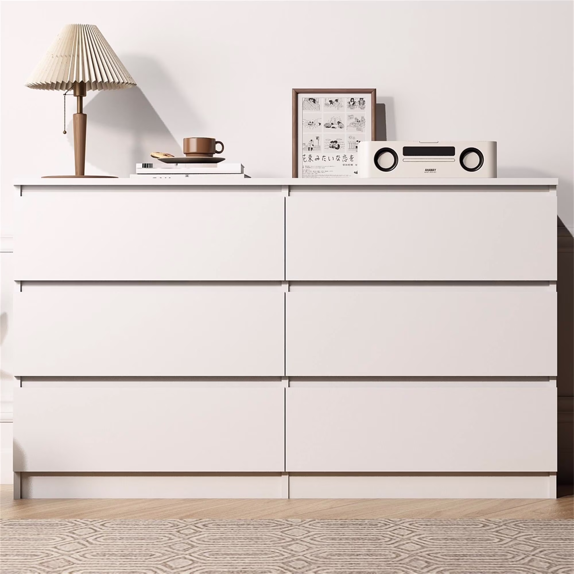 Kadyn White Chest of Drawer, 6 Double Drawer Dresser for Bedroom, Modern Storage Cabinet for Living Room, Dresser